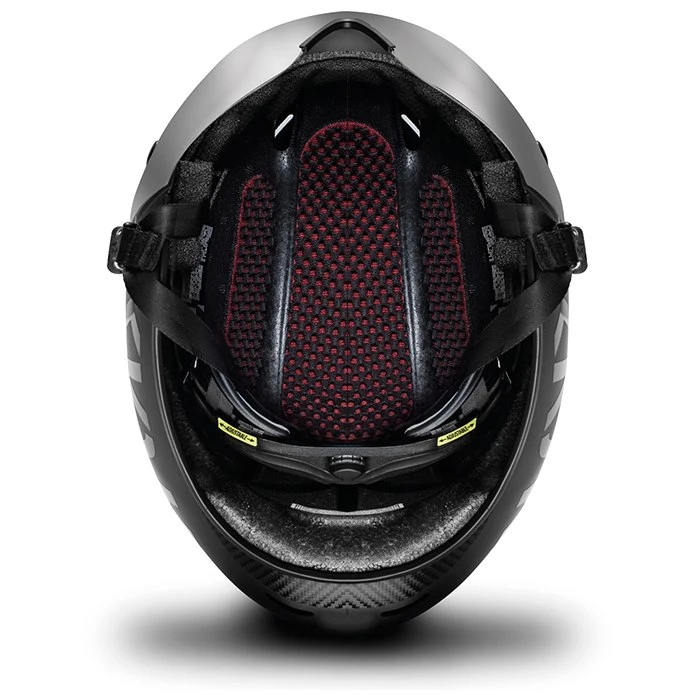 Hier biedt Kask een compacte tijdrithelm in een geavanceerde, aerodynamische vorm en met magnetische vizierbevestiging. Het innovatieve vizier met het kan tijdens het fietsen gemakkelijk worden verwijderd en opnieuw worden aangebracht. De volledige hechting van het vizier aan de helm zorgt voor een constante luchtstroom en de allerbeste aerodynamische eigenschappen. .